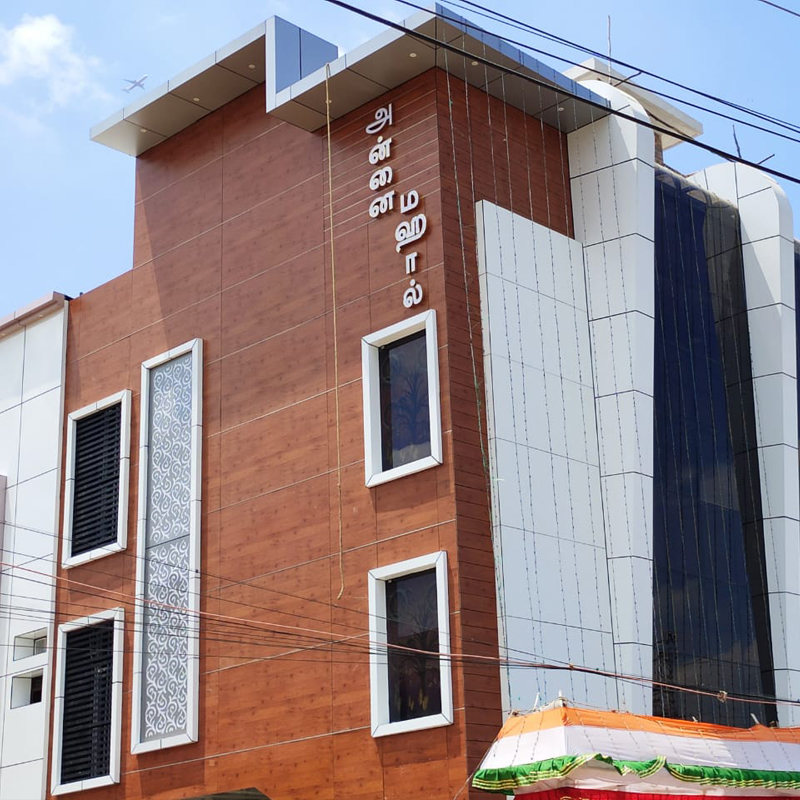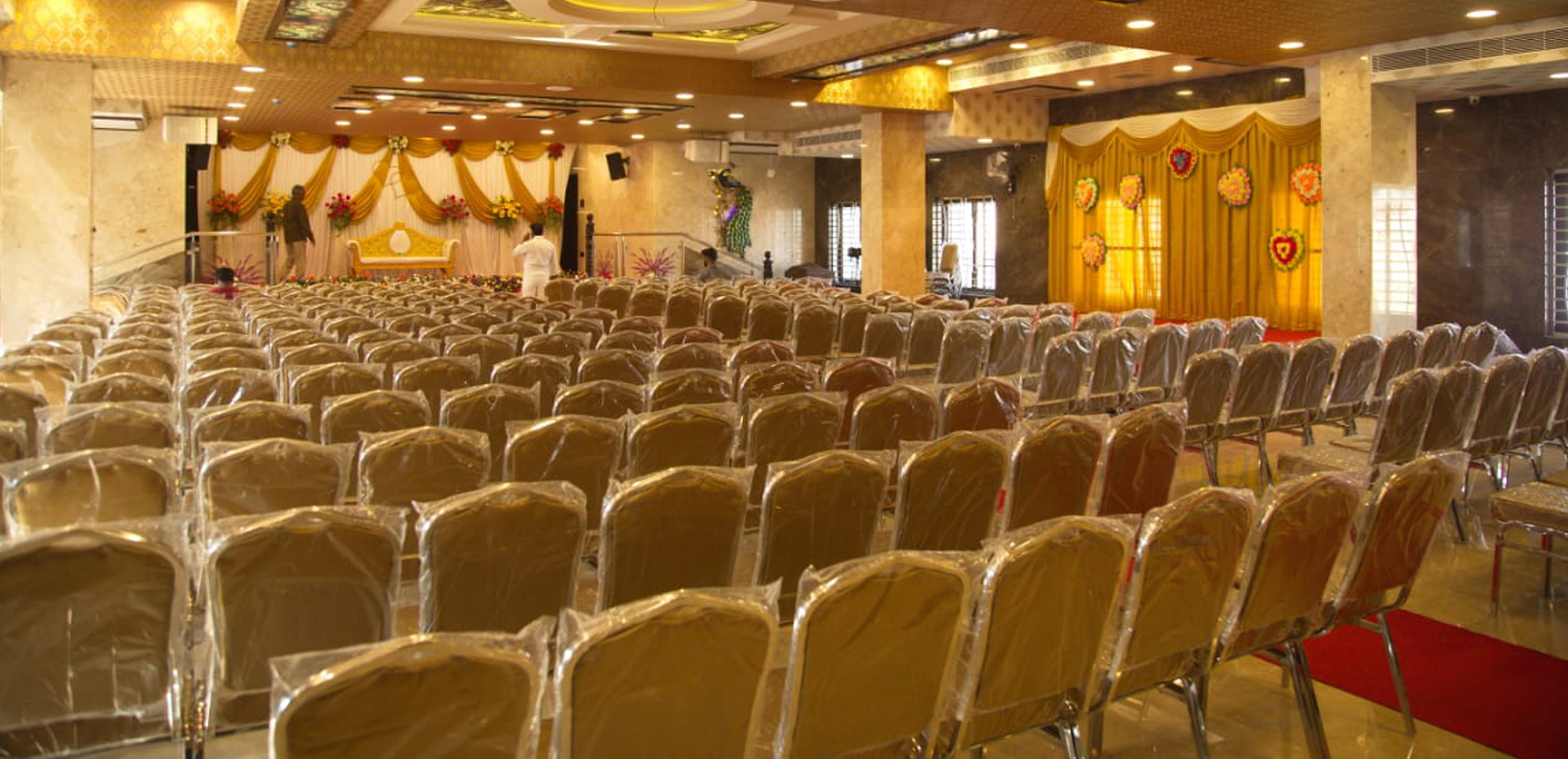 ANNAI MAHAL A/C is one of the prestigious & finest wedding halls in Chennai. It’s a large venue and can comfortably accommodate more than 1500 guests at your function. Features such as ample parking space, modern kitchen facilities, A/C Hall, integrated covered buffet space, Spacious Dining hall, A/C rooms for bride and groom, fully covered buffet space etc sets it apart. The aesthetic design, modern amenities and prime location makes ANNAI MAHAL A/C the ideal choice for marriages, meetings, receptions, engagements, conference, birthday party, festivities and corporate events.